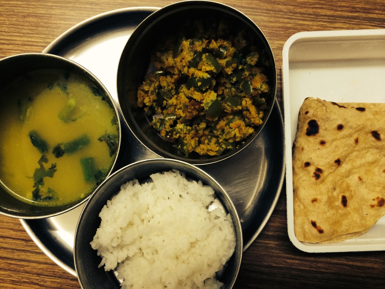 While not at Abelin’s level, her meals were nice: plain rice, soupy dal (occasionally spicy), cooked vegetable (my favorite was okra), and four whole-wheat chapati.